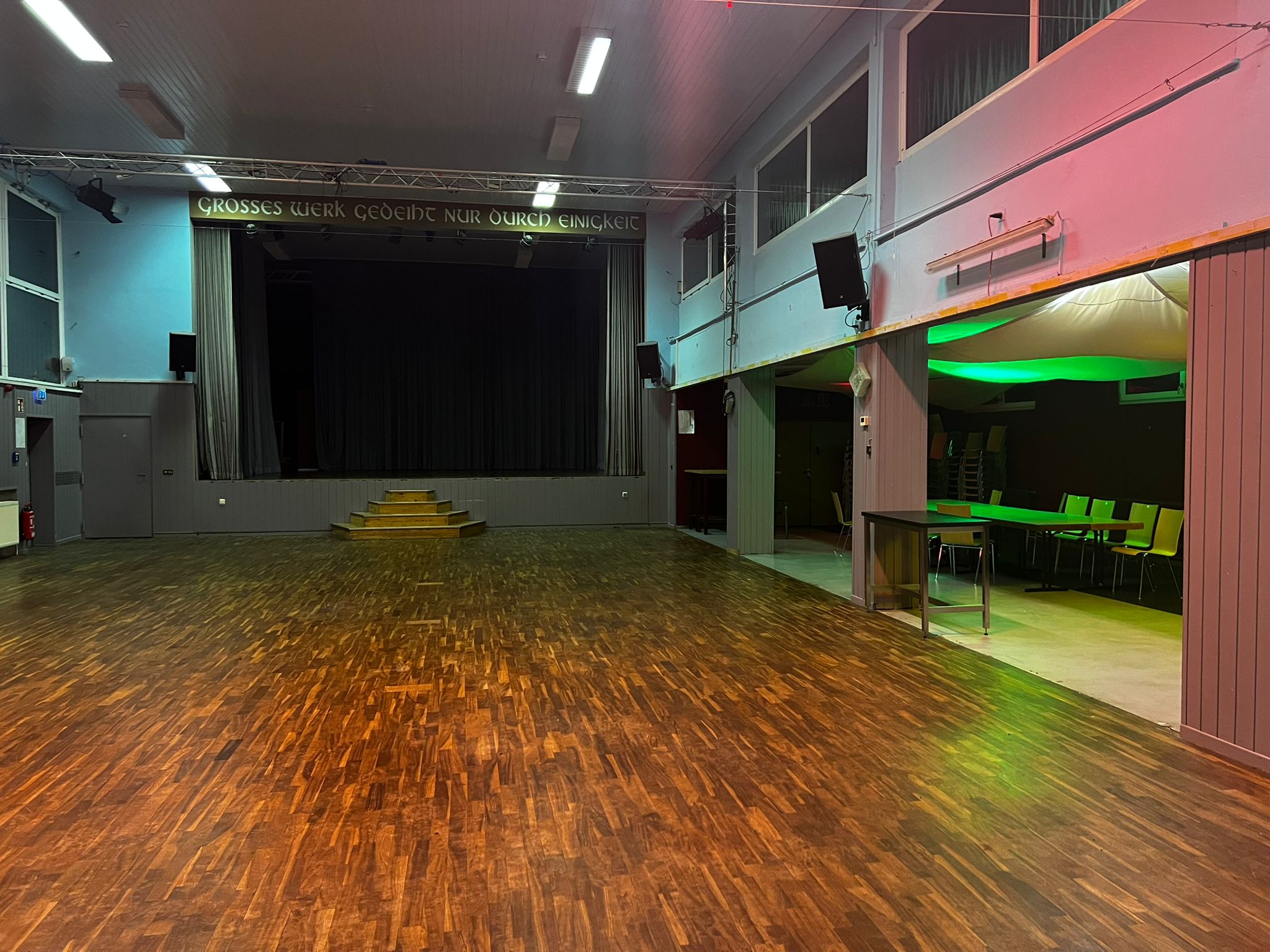 Unser Großer Saal (Saal 1) bietet Platz für bis zu 400 Personen und ist ideal für große Veranstaltungen jeder Art. Ob Konzerte, große Hochzeiten, Firmenveranstaltungen, Galadinner oder umfangreiche Workshops – dieser Saal bietet die perfekte Atmosphäre für eindrucksvolle Events mit vielen Gästen.Zusätzlich stehen Ihnen zahlreiche optionale Zusatzleistungen zur Verfügung. Von professioneller Musik- und Tontechnik über individuelles Catering bis hin zu stilvoller Dekoration kann alles nach Ihren Wünschen organisiert werden. Unser erfahrenes Team unterstützt Sie gerne bei der Planung, damit Ihre Veranstaltung reibungslos und unvergesslich verläuft.