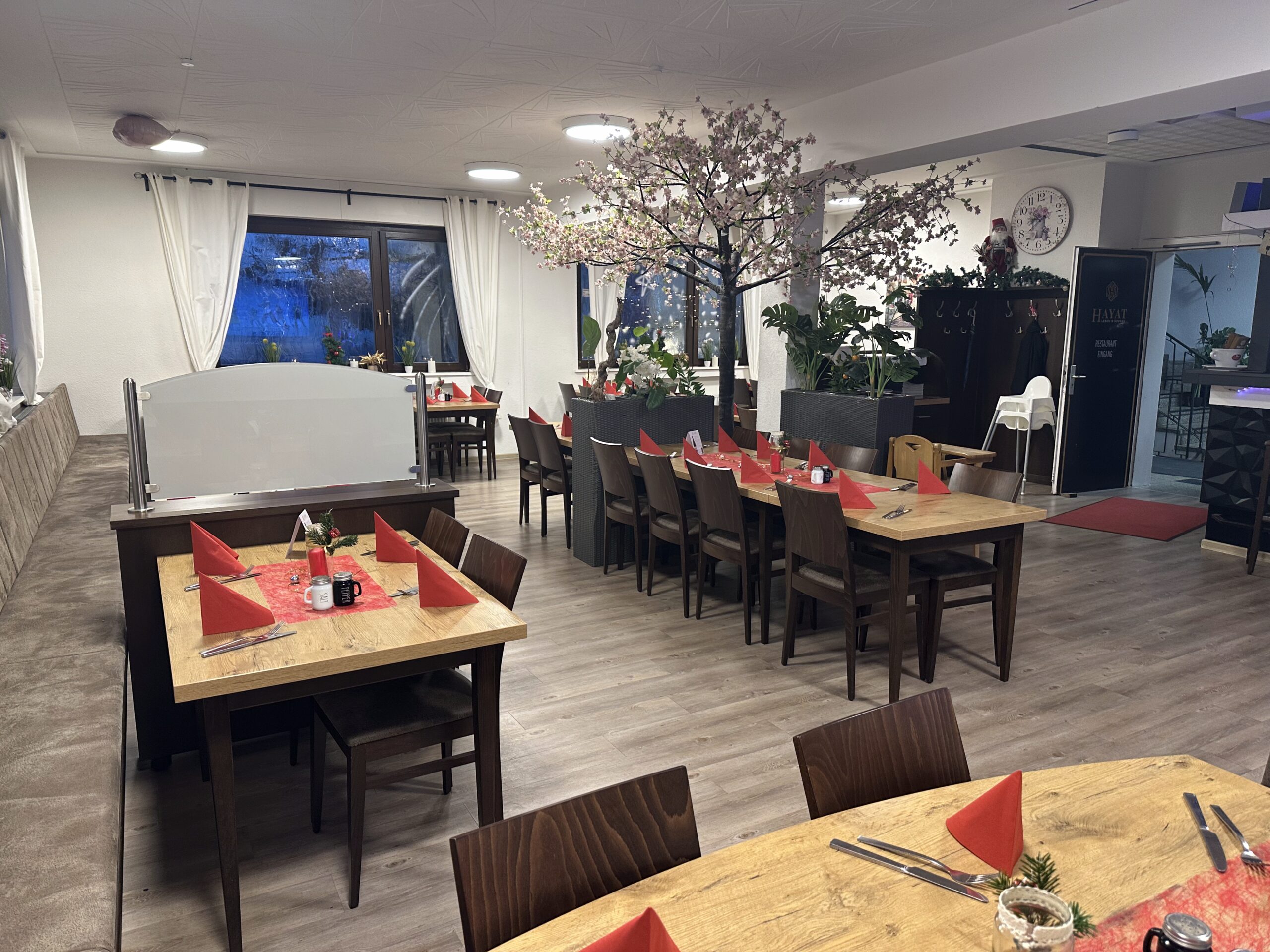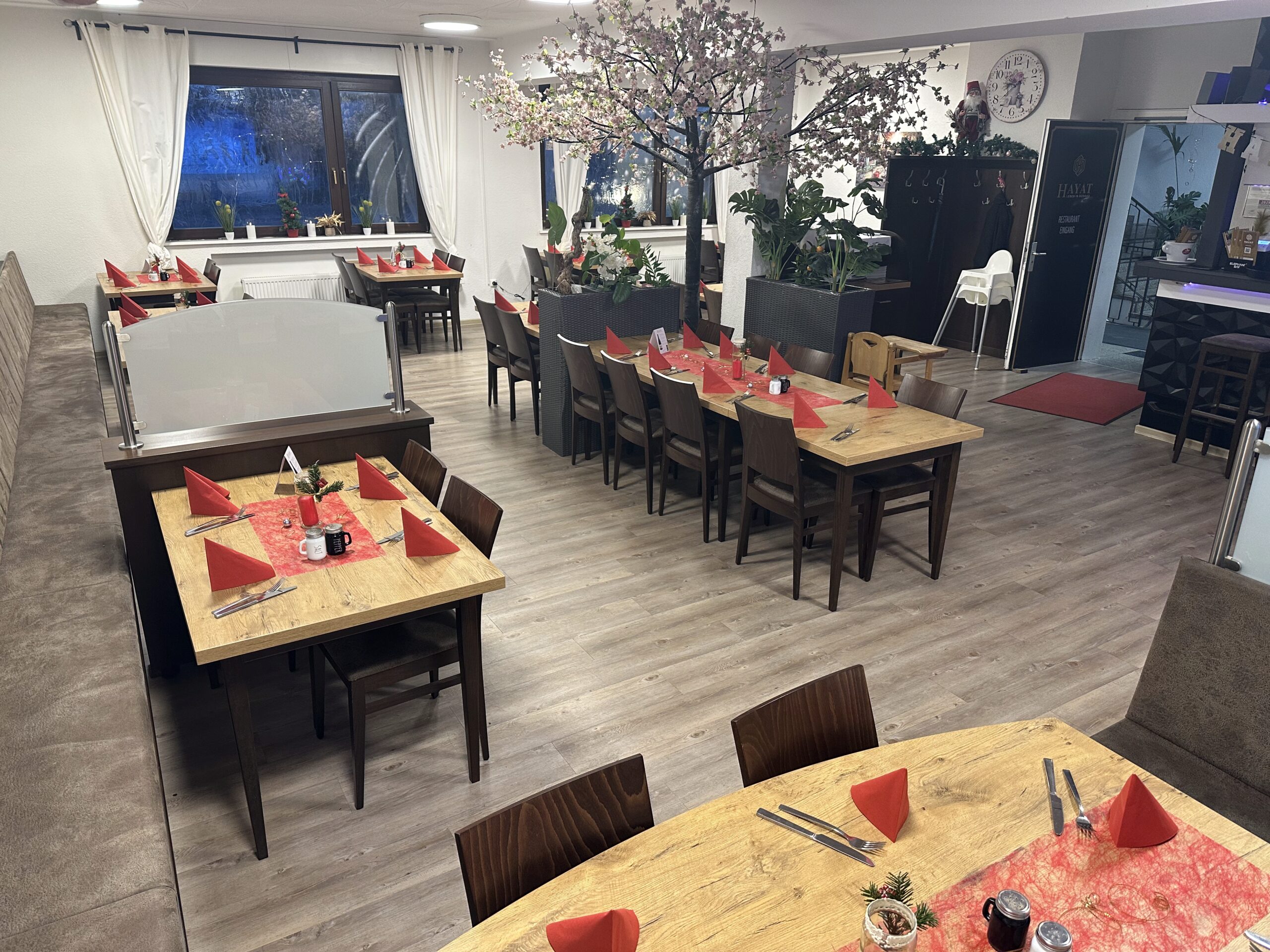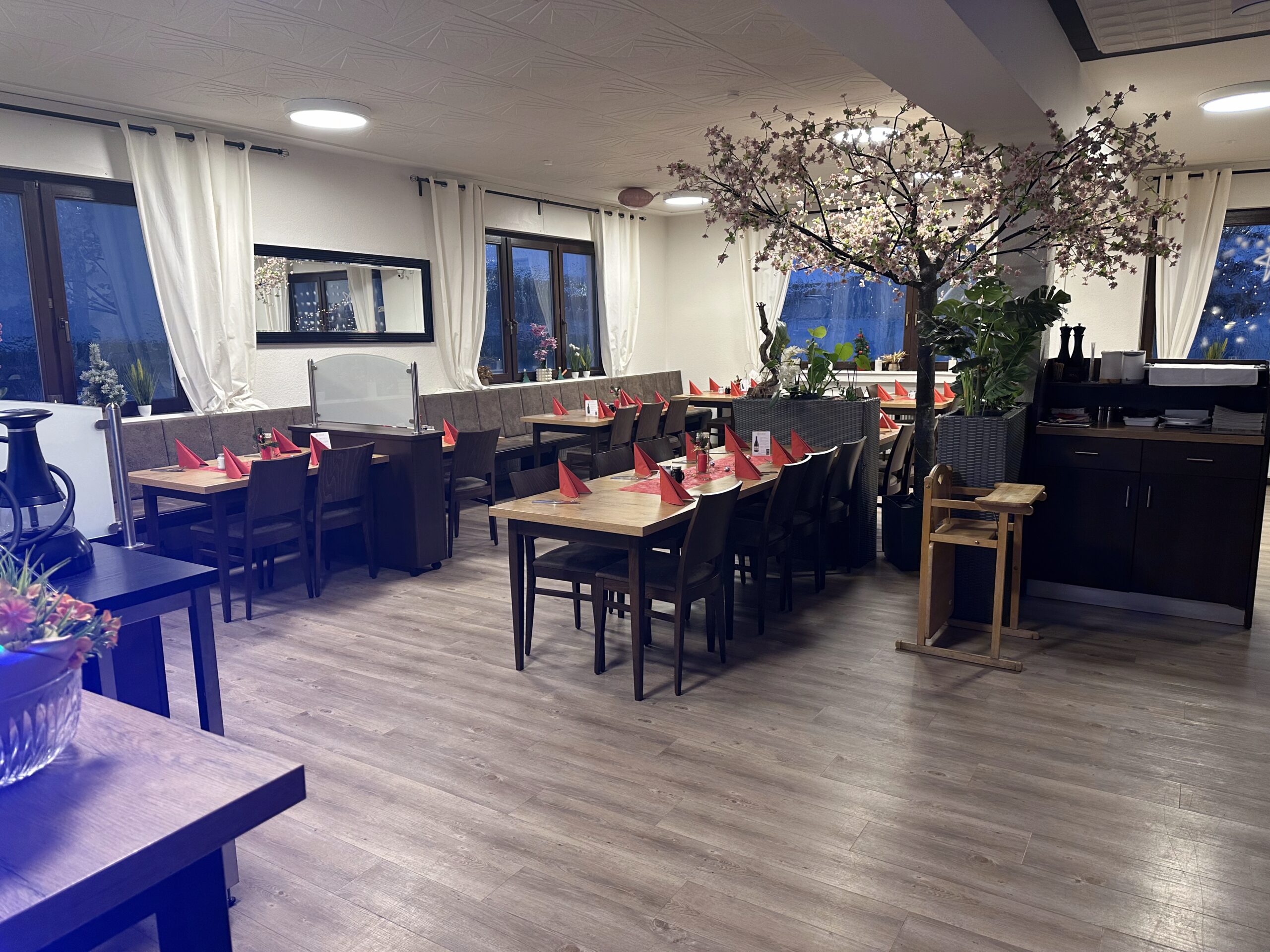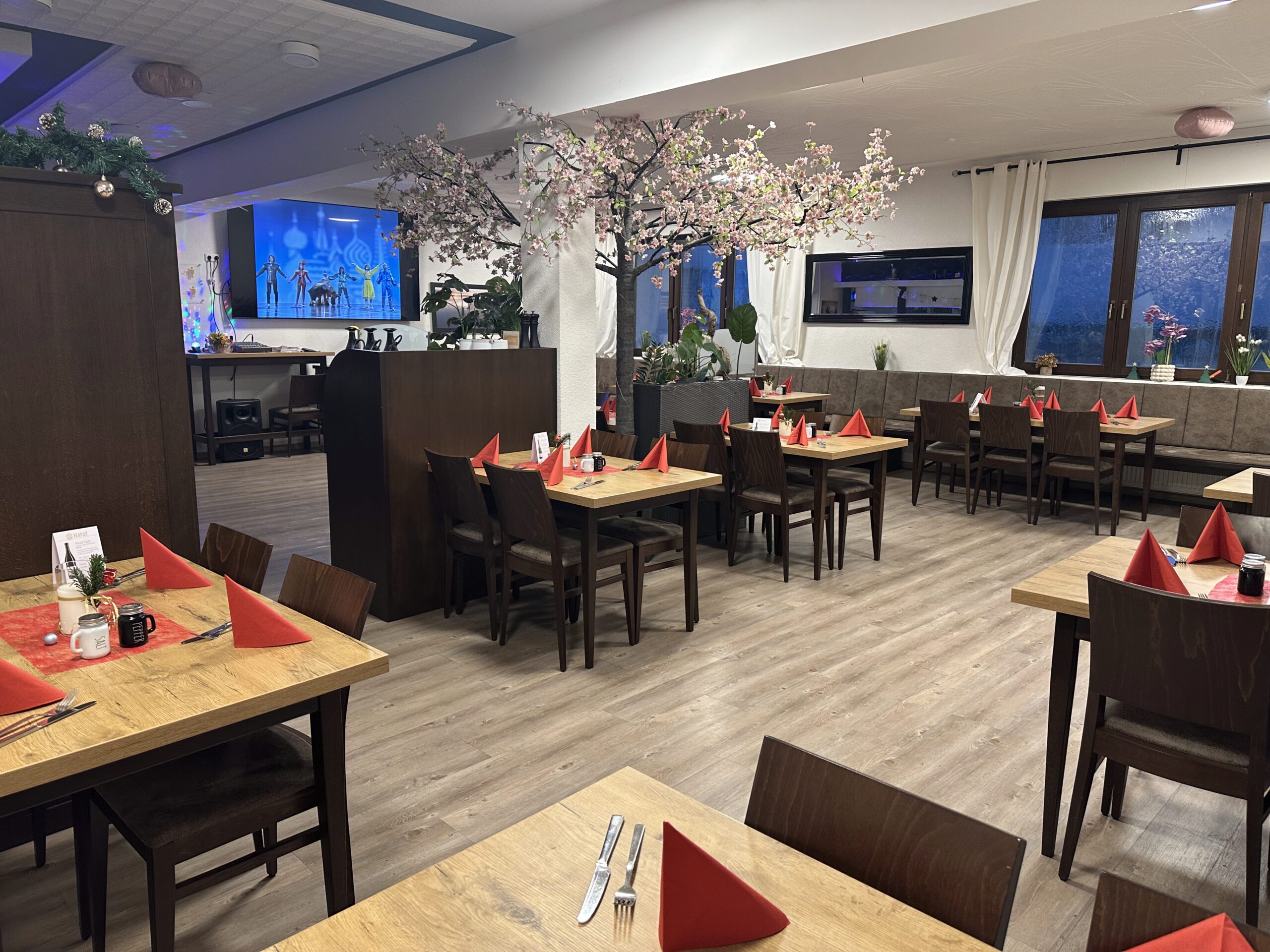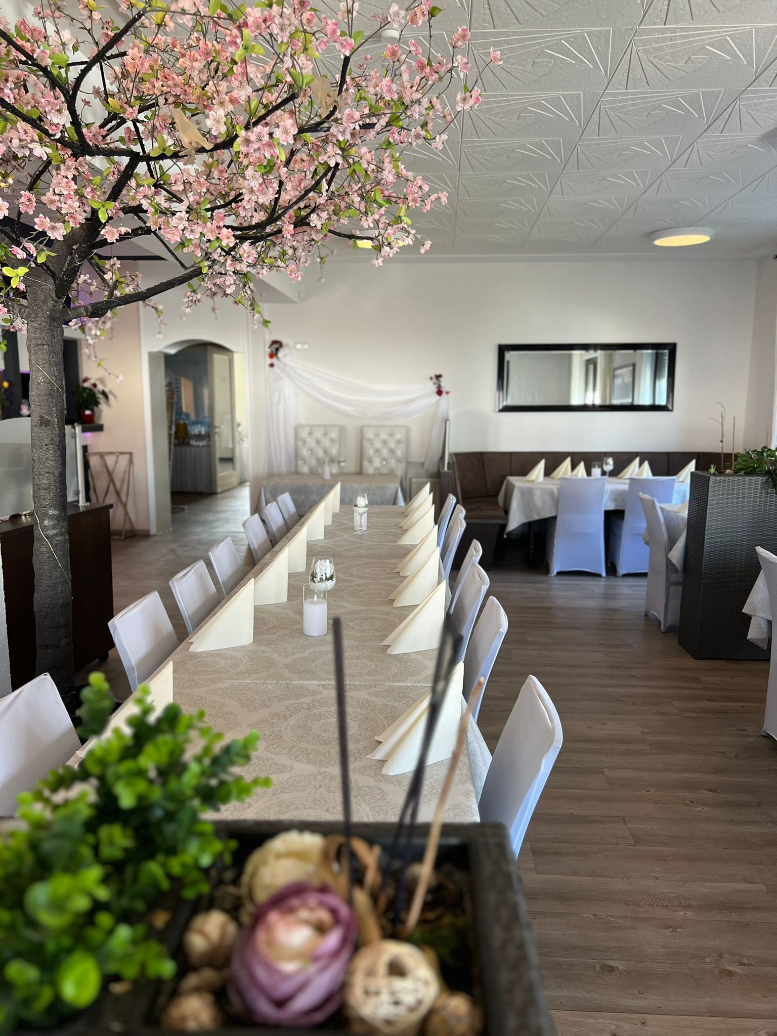 Der Saal 3 befindet sich im Hauptbereich des Restaurants und bietet Platz für bis zu 60 Personen. Je nach Reservierung kann die Tischanordnung und das Raumlayout individuell gestaltet werden, wodurch sich der Bereich flexibel an Ihre Veranstaltung anpasst.