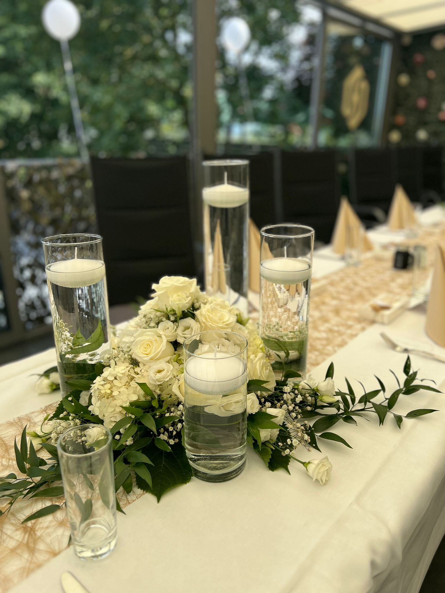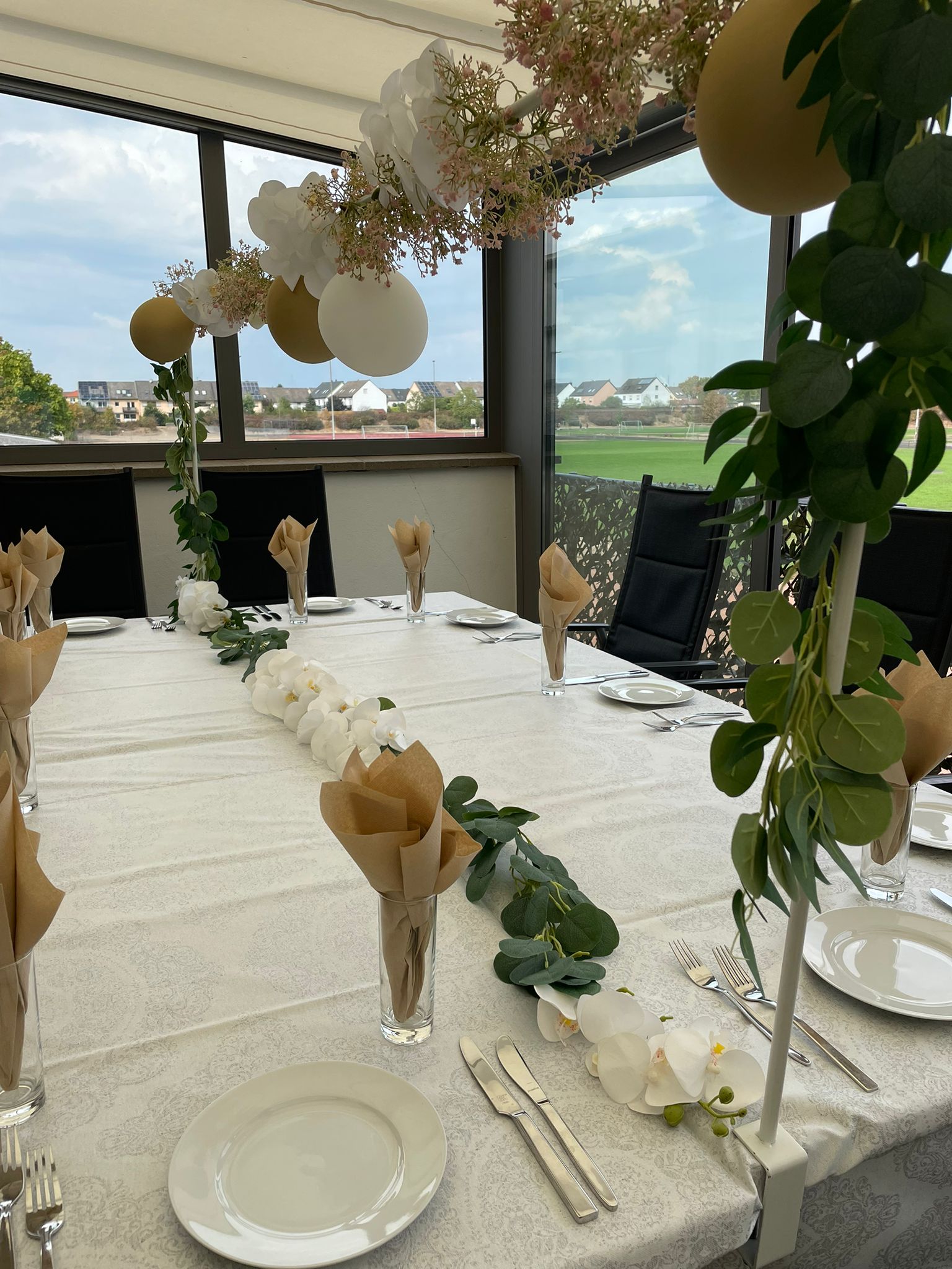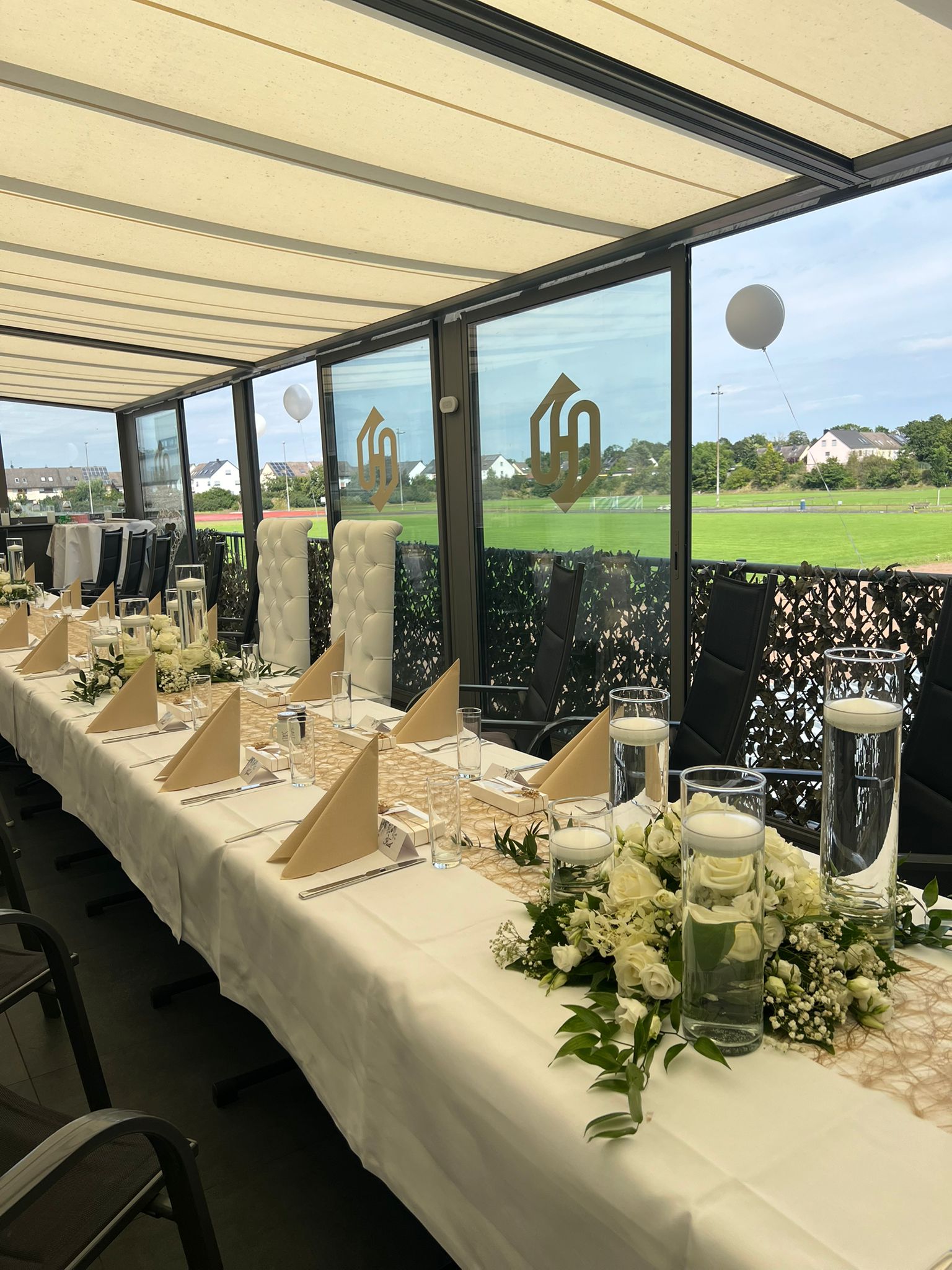 Unsere Terrasse bietet Platz für bis zu 30 Personen und ist ideal für kleinere Feiern wie Verlobungen, Hochzeiten, Geburtstage, Jubiläen, Babyshowers, Trauerfeiern und Geschäftstreffen. Die Atmosphäre ist entspannt und zugleich elegant – perfekt für besondere Anlässe.